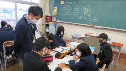 1年1組の数学は、75度の角度をつくる作図に挑戦しています。