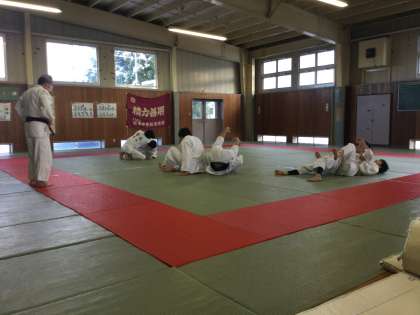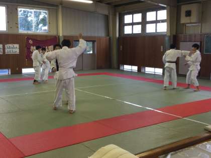 外は雪のちらつく寒い日でしたが、柔道部は、元気いっぱい練習に励みました。