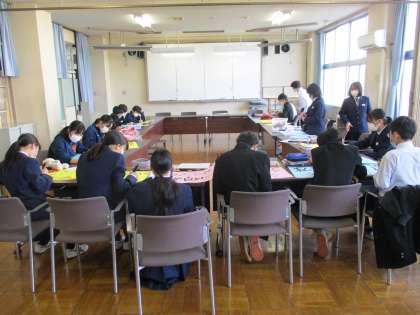 学年生徒会は23日(木)の学年集会での発表に向けて、会議室で、フリップ兼掲示物の作成や各クラスで打ち合わせ等を行いました。