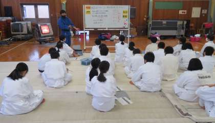 1年・校内互見授業・保体 公開日 2021/12/22 更新日 2021/12/22 1年生 12月22日(水) 1限 1年3組では、柔道(保体)の互見授業を行いました。 学習課題は、「練習方法を工夫して、正しい前回り受け身を身に付けよう」です。 生徒は、クロムブックを活用して、受け身を撮影してもらい、自分の動画を確認します。 クロムブックの活用法がどんどん広がっていますね!