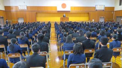 式辞では、校長先生から、「校歌に込められた思い」について、40年前、作詞していただいた大島文雄先生からの手紙を引用してお話ししていただきました。