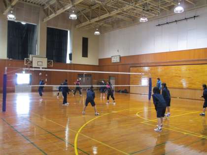 バレーボール部は、ゲーム形式で練習しています。