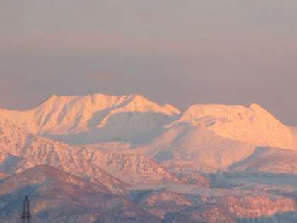 夕陽に染まる立山連峰