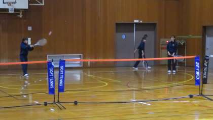 午後から、体育館では、サッカー部(写真:上)とソフトテニス部(写真:下)が練習しています。