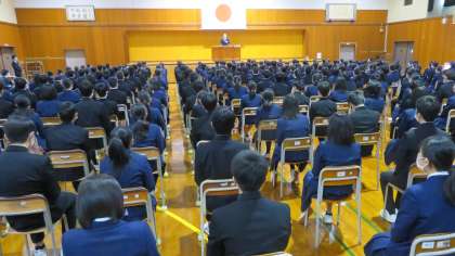 なお、校歌斉唱は、新型コロナウィルス感染症対策のため、校歌静聴に変更しました。