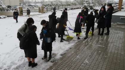 早速、除雪当番の2年2組が除雪を始めました。(写真)