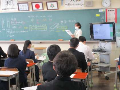 (写真 中:3年2組 理科 確認テストの解説)