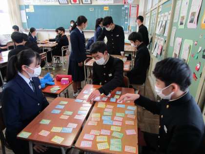(写真 下:3年3組 国語 百人一首)