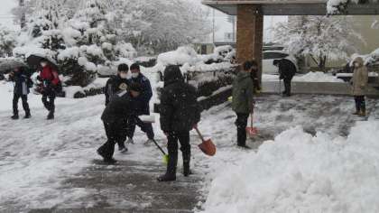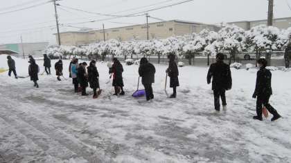 朝のひとこま・その1 公開日 2022/01/13 更新日 2022/01/13 今日の興南中 1月13日(木) 7:45 今朝は、除雪当番の2年3組ががんばっています。 おかげで、生徒玄関前はピッカピカです!(写真:下)