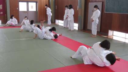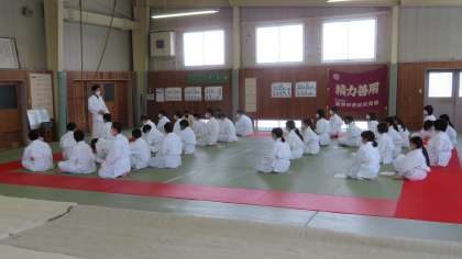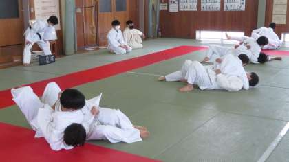 1月14日(金) 4限 2年1組の体育は、武道館で柔道をしていました。 3学期最初の柔道は「袈裟固め」の復習です。