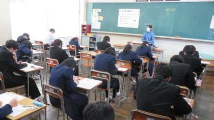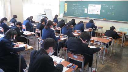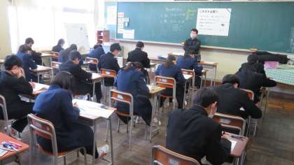 1年・冬休み明けテスト・2日目 公開日 2022/01/14 更新日 2022/01/14 1年生 1月14日(金) 6限 数学 1年生は、「冬休み明けテスト」2日目です。 (写真 上:1年1組 中:1年2組 下:1年3組) 冬休みの復習の成果は発揮できましたか?