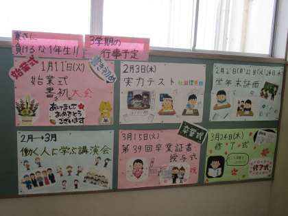 昨日の放課後、有志の人が集まって、学年掲示板の3学期の行事予定を少し変更してくれました。