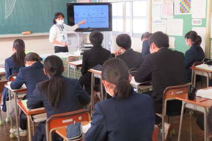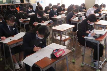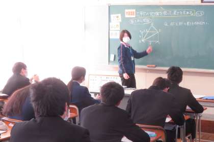 3年・授業風景 公開日 2022/01/27 更新日 2022/01/29 2年生 1月27日(木) 3限 私立高校一般入試まで、あと1週間です。 授業にも少し緊張感が感じられます。 (写真 上:3年1組 理科の授業「確認テストの解説」) (写真 中:3年2組 数学の授業「三平方の定理の応用」) (写真 下:3年3組 英語の授業「私立高校過去問に挑戦」)