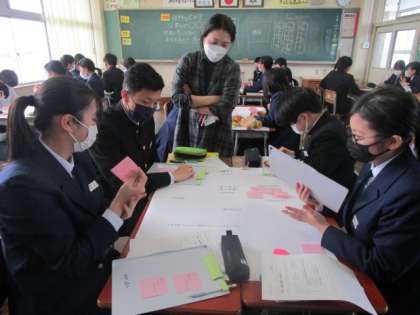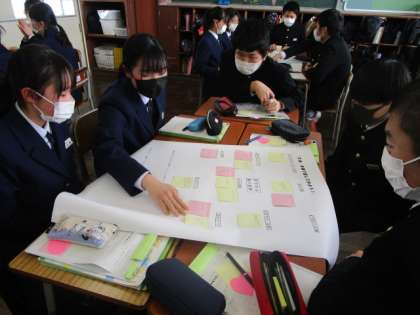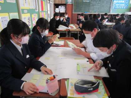 2年・総合・進路学習 公開日 2022/01/28 更新日 2022/01/28 2年生 1月28日(金) 5,6限 2年生は総合的な学習の時間に、進路学習を行いました。 「さあ、本音で話してみよう」というテーマで、自分が進学先を選ぶ基準や、上級学校で頑張りたいこと等を話し合いました。 クラス混合で24のグループに分かれ、普段話したことのない友達とも意見を交換することができました。