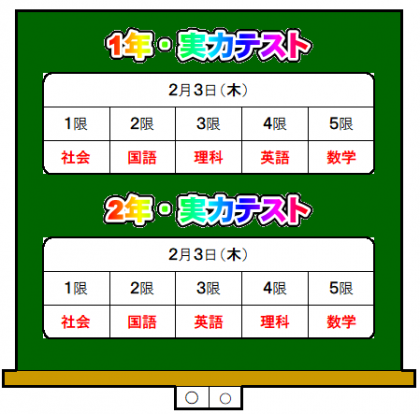 明日、1,2年生は「実力テスト」です!