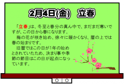 24節気の最初の節気で、旧暦では新しい年の始まりを意味しています。