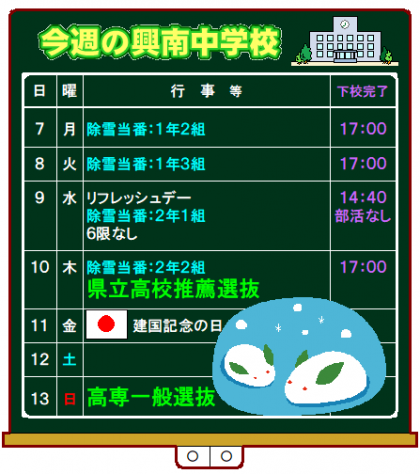 今週末11日(金)は「建国記念の日」のため、お休みです。