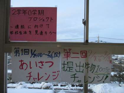2週間後から学年末評価が始まるので、それに向けて、この2週間は「提出物100%チャレンジ!」です。