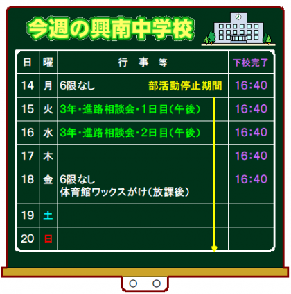 明日14日(月)から部活動停止期間に入ります。(〜2/24)