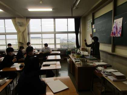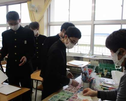 3年2組の美術は、卒業に向けてのメッセージカードを作っています。