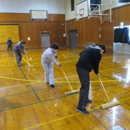 2月18日(金) 15:00 そのあと、教職員でワックスがけを行いました。