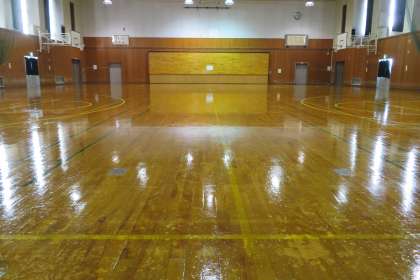 2月19日(土) 11:00 昨日、体育館ワックスがけをしたので、体育館はピッカピカです!