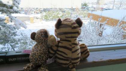 いつまで降るのかなぁ〜? 公開日 2022/02/21 更新日 2022/02/21 今日の興南中 ▲降雪状況を見守るトラ之助、ヒョウ介 2月21日(月) 11:30 2月下旬だというのに、いつまで降るのでしょうか? 予報では、23日まで雪マークになっています。 もうしばらくの辛抱ですね。