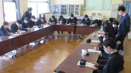 代議員会&実践部会 公開日 2022/02/24 更新日 2022/02/24 今日の興南中 2月24日(木) 6限 6限に「代議員会&実践部会」を行いました。 1〜3年が揃う最後の部会でした。 (写真 上:代議員会 中:図書実践部会 下:校紀実践部会) 次年度につながる会になったのでしょうか?