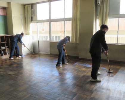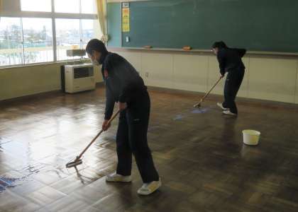 放課後、美化実践部を中心に、「教室・特別教室のワックがけ」を行いました。