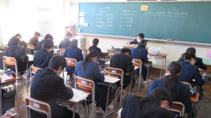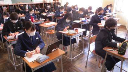 (写真 下:1年3組 英語の授業 … クロムブックを活用して)