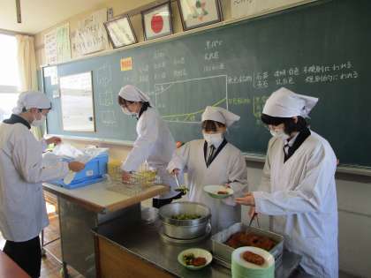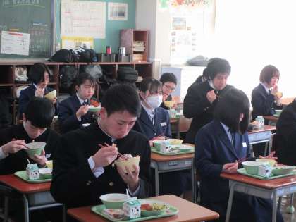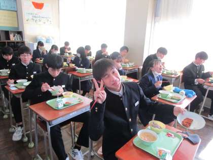 卒業祝い給食・その2 公開日 2022/03/04 更新日 2022/03/04 3年生 3月4日(金) 給食 3月15日(火)の卒業を控えた3年生は、美味しく食べました! (写真 上:3年1組 中:3年2組 下:3年3組)