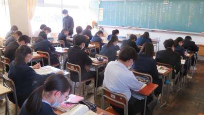 2年・授業風景 公開日 2022/03/09 更新日 2022/03/09 2年生 3月9日(水) 3限 春の陽気を感じながらも、2年生は授業に集中しています。 (写真 上:2年1組 数学の授業) (写真 下:2年3組 国語の授業)