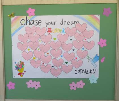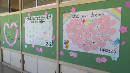 (写真 上:1年2組、2年2組からのメッセージ)