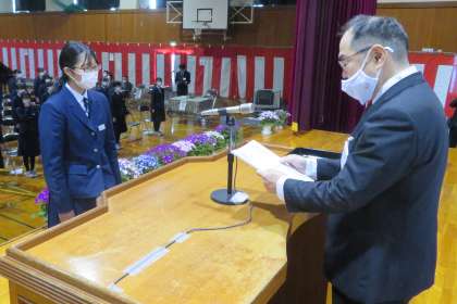 「授賞伝達式」のあと、「3年・修了式」を行いました。