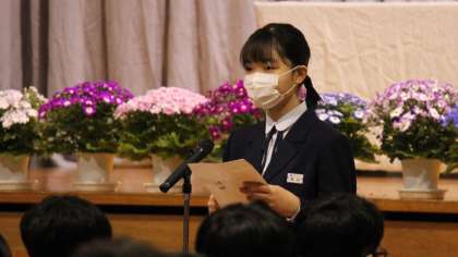3月15日(火) 在校生を代表して、黒田さんが送辞を述べました。