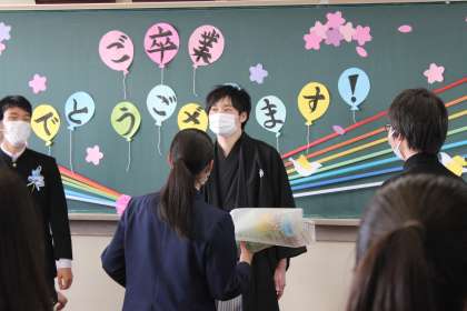 「第39回 卒業証書授与式」・その10 公開日 2022/03/15 更新日 2022/03/15 今日の興南中 3月15日(火) 10:40 教室に戻り、最後の学活は、約30分間……。 担任の先生が最後に語った言葉は? (写真 上:3年1組 中:3年2組 下:3年3組)
