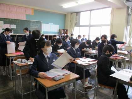 (写真 下:1年3組キャリアパスポートファイル作り)