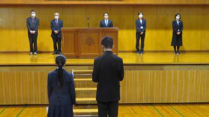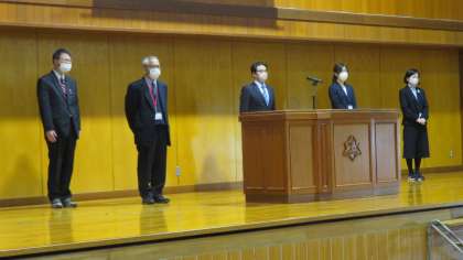 離任式 公開日 2022/03/24 更新日 2022/03/24 今日の興南中 3月24日(木) 9:30 「退任式」のあと、「離任式」を行いました。 山本先生、橋本先生、青江先生、中林先生、スクールサポーターの伊藤先生、5人の先生とお別れしました。 今まで本当にお世話になりました。 ありがとうございました!