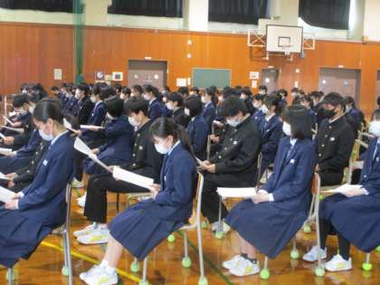 生徒は新学期の決意も新たに、真剣に式に臨んでいました。