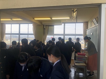 4月7日(木) 3年 1限 学級活動 公開日 2022/04/07 更新日 2022/04/07 今日の興南中 4月7日(木)3年生 1限 学活 朝から、とてもよい天気です。桜が満開となっています。3年生は1限の学活を利用して、前庭の桜の下でクラス写真を撮影しています。とても気持ちよさそうです。 写真上:撮影後、学級で活動している3年1組 写真中:桜の下で撮影している3年2組 写真下:写真を待つ3年3組