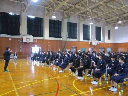 3学年集会 公開日 2022/04/08 更新日 2022/04/08 3年生 4月7日(木)4限 3年生の学年集会を行いました。最高学年としての意識の高さがうかがえる集会の姿勢でした。1年間、がんばっていきましょう。 写真:集会の様子