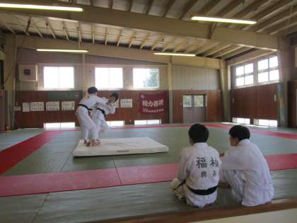 4月11日(月)の「部活動紹介」に向けて1年生に説明する練習をする柔道部。