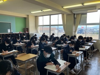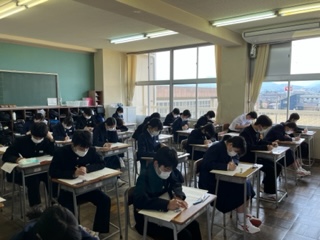 今日は、2、3年生が1限から3限まで、中教研学力調査です。