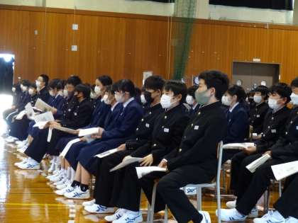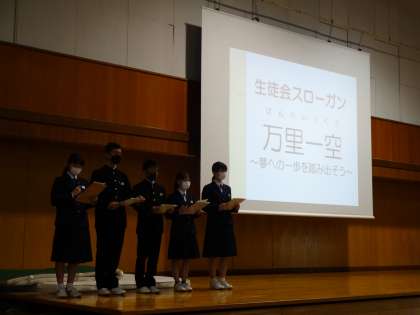 生徒会オリエンテーション その1 公開日 2022/04/11 更新日 2022/04/11 1年生 4限に生徒会オリエンテーションを行いました。 初めに生徒会執行部と各実践部長から生徒会活動についての説明がありました。