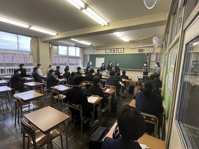 写真下:校紀実践部の顧問の先生からのお話を聞いています。