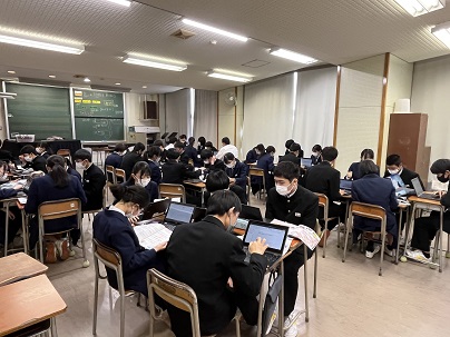 1限 授業風景(3年生) 公開日 2022/04/15 更新日 2022/04/15 今日の興南中 3年生ともなるとクロムブックやグループ学習、ファイルの使い方も慣れています。 先生から細かな指示がなくても動いています。 写真上:3年1組 音楽 写真中:3年2組 体育 写真下:3年3組 英語