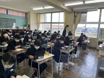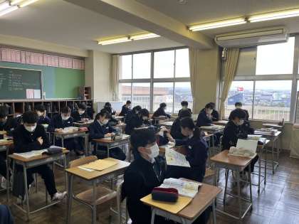 5限 授業風景(2年生) 公開日 2022/04/15 更新日 2022/04/15 今日の興南中 2年生も午後の授業、集中しています! 写真上:2年1組 数学 写真中:2年2組 理科 写真下:2年3組 英語