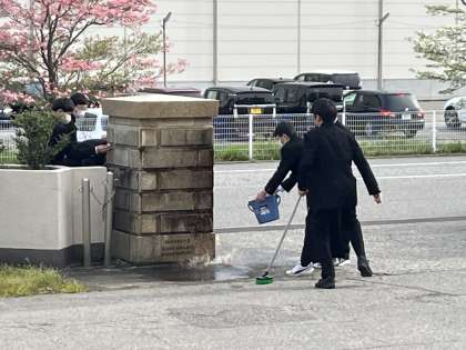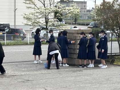 先陣は2年1組です。校門を磨いてくれています。朝早くからありがとうございます!