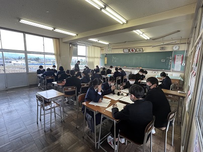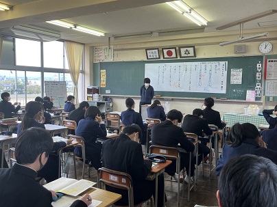 「分かる・できる」をめざして その2 公開日 2022/04/18 更新日 2022/04/18 今日の興南中 写真上:2年1組 国語 詩が拡大して提示されています。 写真中:2年2組 体育 集団行動で一つ一つ動きを丁寧に確認しています 写真下:2年3組 理科 グループで学び合いながら模範解答を作っています。