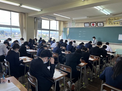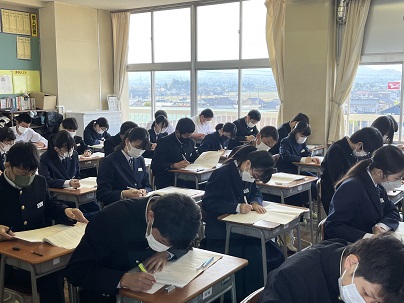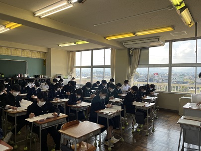 3年生 全国学力・学習状況調査 公開日 2022/04/19 更新日 2022/04/19 今日の興南中 3年生は今日1限から3限まで、全国一斉に行われる「全国学力・学習状況調査」に臨んでいます。 1限国語 2限数学 3限理科の3教科行われています。 3年生がんばれ!